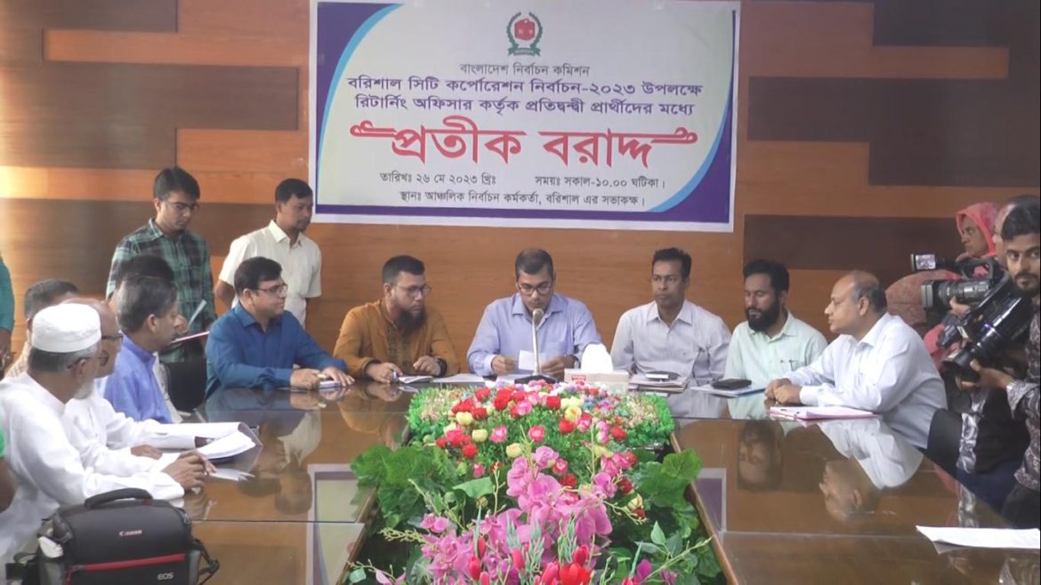 প্রথমে প্রতিদ্বন্দ্বী ৭ মেয়র প্রার্থীদের মাঝে প্রতীক বরাদ্দ দেন রিটার্নিং কর্মকর্তা। আওয়ামী লীগ প্রার্থী আবুল খায়ের খোকন সেরনিয়াবাতকে দলীয় প্রতীক নৌকা, জাতীয় পার্টির ইকবাল হোসেন তাপসকে লাঙ্গল, ইসলামী আন্দোলন বাংলাদেশ প্রার্থী মুফতি সৈয়দ মুহাম্মদ ফয়জুল করীমকে হাতপাখা এবং জাকের পার্টির মিজানুর রহমান বাচ্চুকে গোলাপ ফুল প্রতীক বরাদ্দ দেন তিনি। এছাড়া স্বতন্ত্র মেয়র প্রাথী কামরুল আহসান রূপনকে টেবিল ঘড়ি, আলী হোসেন হাওলাদারকে হরিন এবং অপর স্বতন্ত্র প্রার্থী মো. আসাদুজ্জামানকে হাতি প্রতীক বরাদ্দ দেন রিটার্নিং কর্মকর্তা।