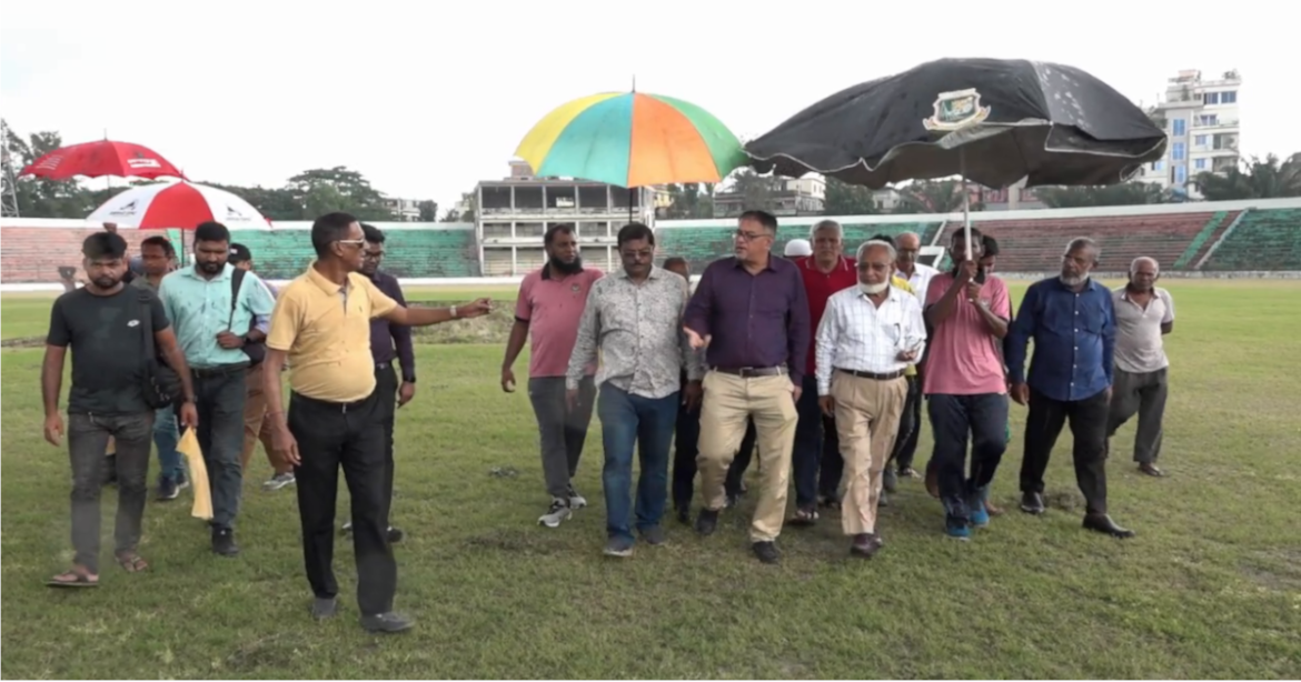 বিসিবি’র প্রধান ফিল্ড ডিরেক্টর সৈয়দ আবদুল বাতেন ও বিসিসি’র প্রধান কিউরেটক নিউজিল্যান্ডের টনি হামিংস সকাল সাড়ে ১১টার দিকে বরিশাল স্টেডিয়াম পরিদর্শন করেন।