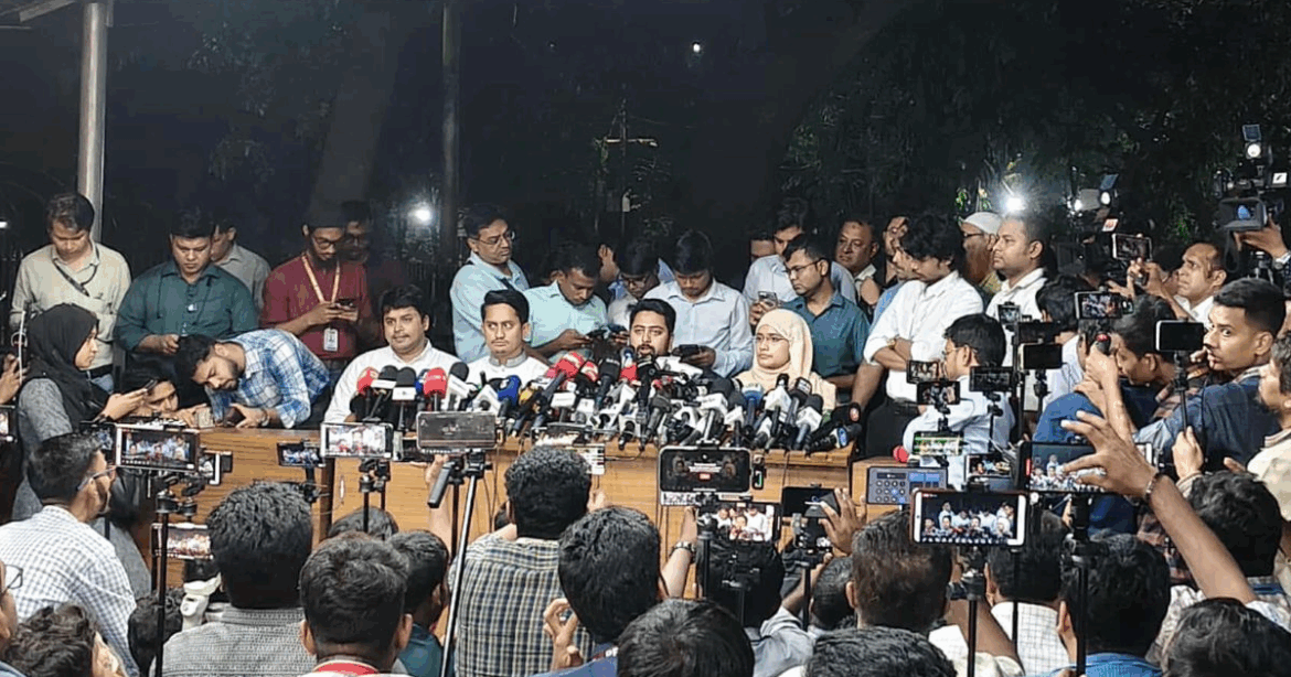 এর আগে, বিকাল ৫টায় অন্তর্বর্তী সরকারের প্রধান উপদেষ্টা ড. মুহাম্মদ ইউনূসের সঙ্গে দেখা করতে যমুনা যান এনসিপি ৪ নেতা। নাহিদ ছাড়াও প্রতিনিধি দলে ছিলেনদলের উত্তরাঞ্চলের মুখ্য সংগঠক সারজিস আলম, জ্যেষ্ঠ যুগ্ম আহ্বায়ক সামান্তা শারমিন ও যুগ্ম আহ্বায়ক খালেদ সাইফুল্লাহ।