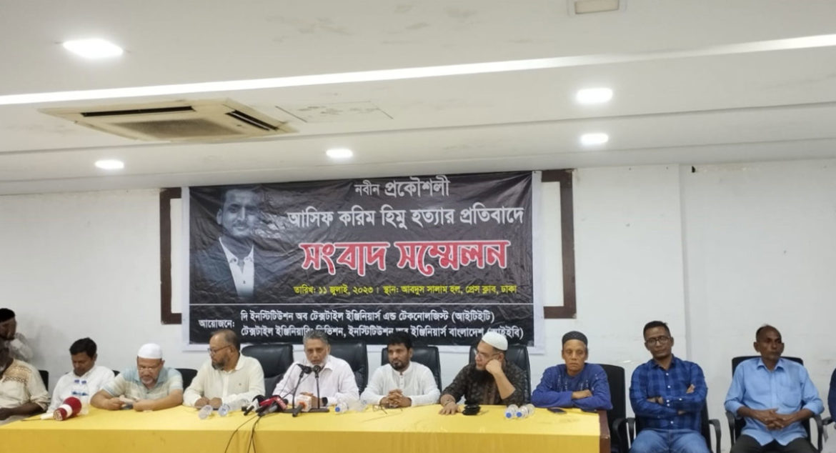 বাংলাদেশ টেক্সটাইল বিশ্ববিদ্যালয়ের সাবেক শিক্ষার্থী এবং মেধাবী নবীন প্রকৌশলী আসিফ করিম হিমু (২৮) সন্ত্রাসীদের হামলায় নিহত হন। মঙ্গলবার (১১ জুলাই) জাতীয় প্রেস ক্লাবের আবদুস সালাম হলে প্রকৌশলী আসিফ করিম হিমু হত্যার প্রতিবাদে এক সংবাদ সম্মেলনে এ দাবি জানানো হয়।
