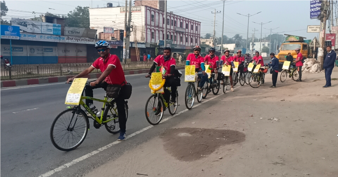 “বাংলা কখনো হয় না ভাগ, বাংলা ভাষায় আমার এক” এই প্রতিপাদকে সামনে নিয়ে দশম ভারত–বাংলাদেশ আন্তর্জাতিক সাইকেল রেলি নিয়ে বাংলাদেশের প্রবেশ করেছে ভারতের পশ্চিমবঙ্গের ১০০ মাইলস ও ভাষা সূত্র নামে দুটি সংগঠনের ১০ জন সদস্য।