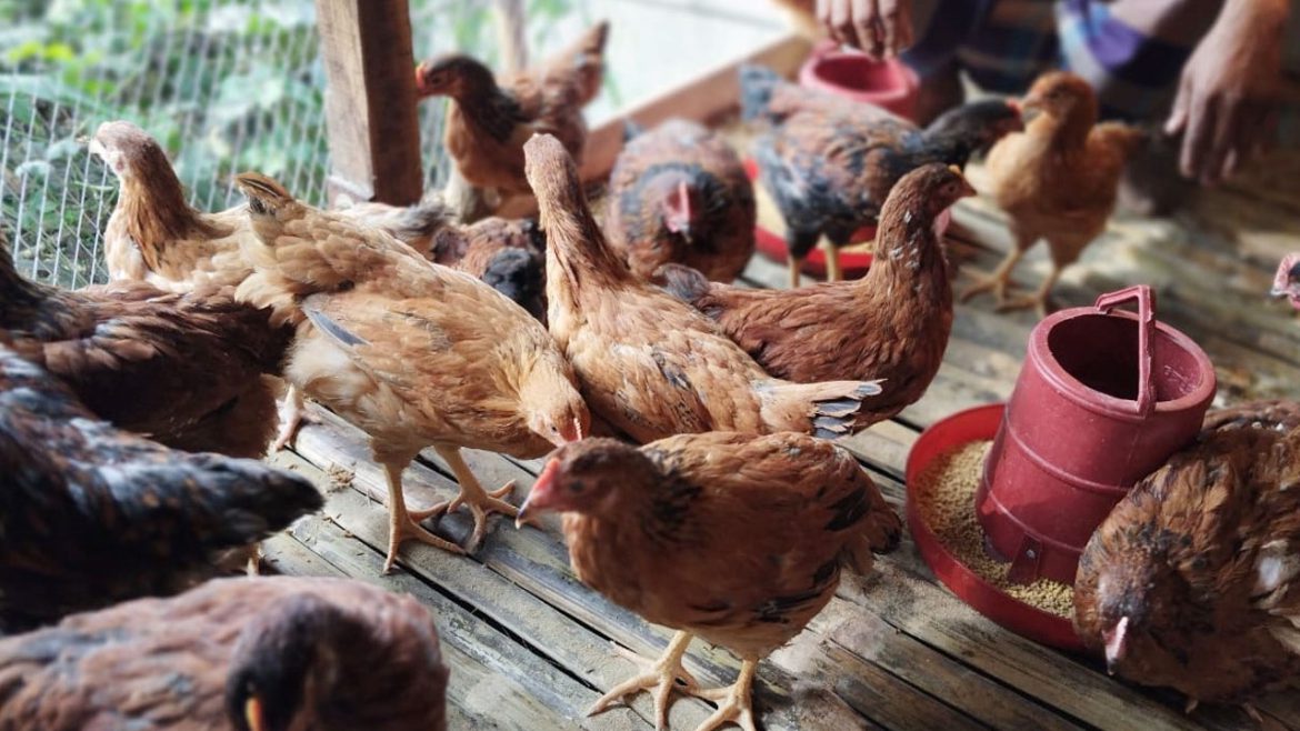 খিয়ারদুগাপুর গ্রামের বাউ মুরগির খামারি সজল রায় জানান, ‘আমার বাড়ি আমার খামার’– প্রকল্প থেকে স্বল্প সুদের ঋণ নিয়ে স্থানীয় প্রাণী সম্পদ বিভাগের মাঠ কর্মকর্তাদের সহযোগিতায় পরীক্ষামূলকভাবে খামার করার জন্য ২৫০টি মুরগি নিয়েছিলাম।
