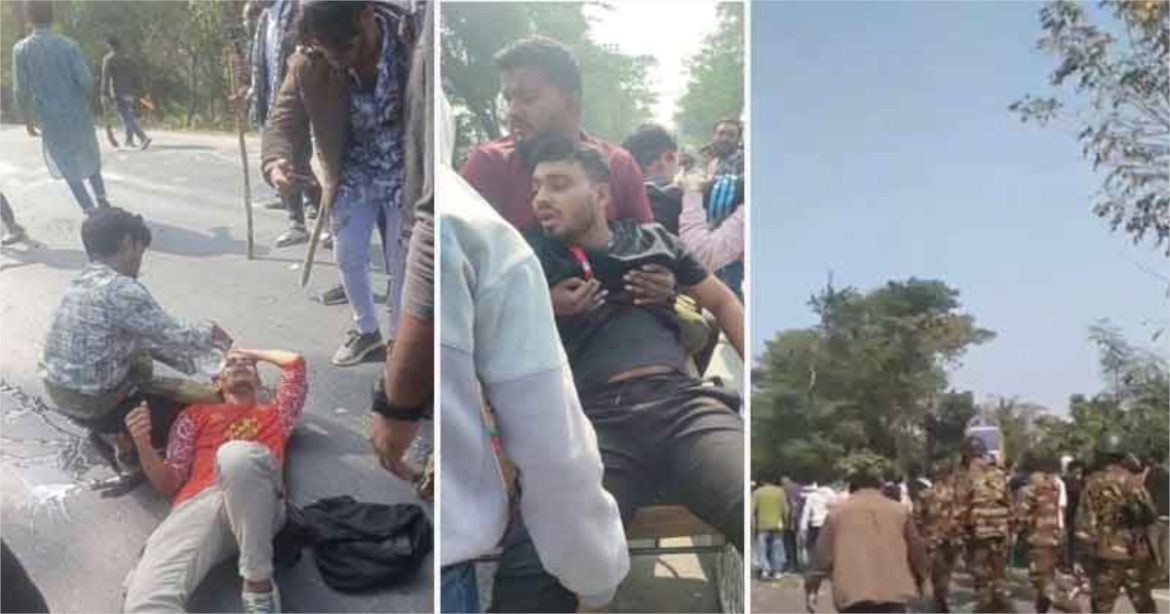 মঙ্গলবার (৩১ ডিসেম্বর) সকালে খুলনা মহানগর থেকে শিক্ষার্থীদের বহনকারী ২৫টি বাস ঢাকার উদ্দেশ্যে যাত্রা করে। উপজেলার মাদরাসাঘাট এলাকায় পৌঁছালে স্থানীয় সন্ত্রাসীরা গাড়ি লক্ষ্য করে ইট–পাটকেল নিক্ষেপ করে এবং গাড়ি থামিয়ে কয়েকজনকে মারধর করে।