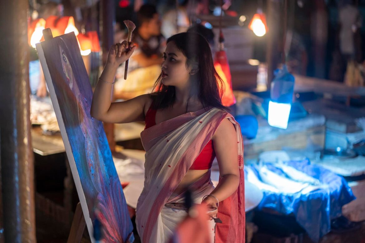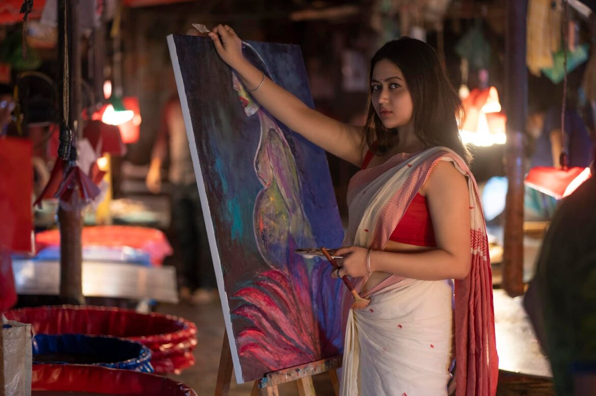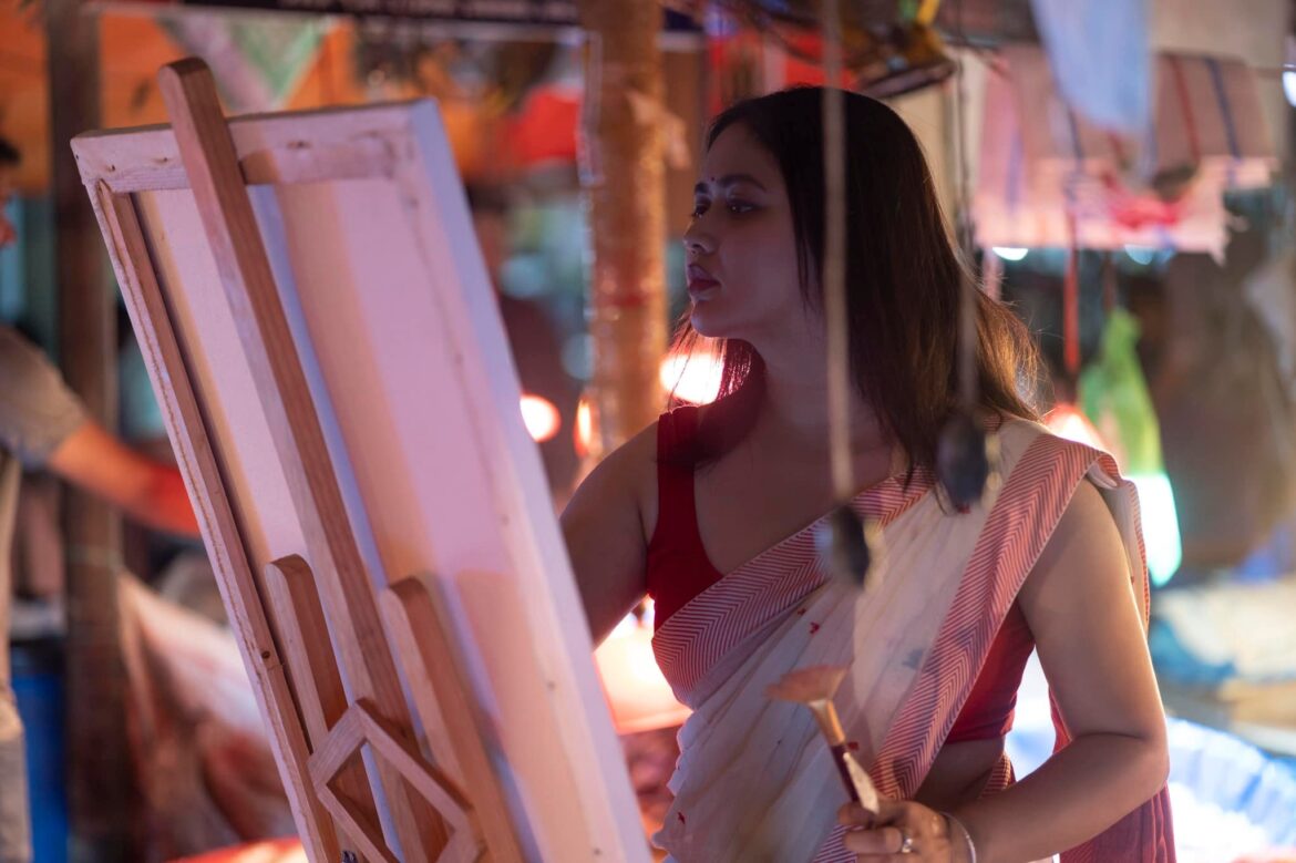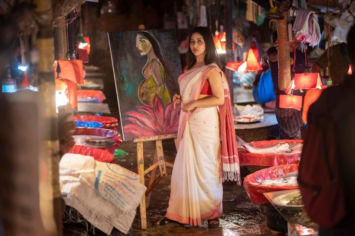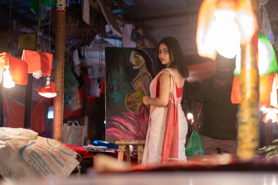 বাজারে গিয়ে ভাবনা যে ছবিটি এঁকেছেন, সেখানে দেখা যাচ্ছে, একটি পদ্মফুলের ওপর একজন গর্ভবতী নারীর অবয়ব। এর মাধ্যমে নারীর সৌন্দর্য এবং মাতৃত্ব ফুটিয়ে তুলেছেন অভিনেত্রী।