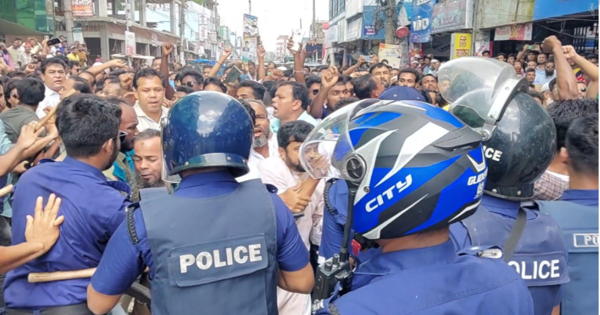 খালেদা জিয়ার মুক্তি, সরকার পদত্যাগ ও তত্ত্বাবধায়ক সরকারের অধীনে আগামী নির্বাচনের দাবিতে কেন্দ্রীয় কর্মসূচি অংশ হিসেবে বরগুনায় জেলা বিএনপির উদ্যোগে পথযাত্রায় পুলিশের বাধা ও লাঠিচার্জে আহত ১৫ নেতাকর্মী।