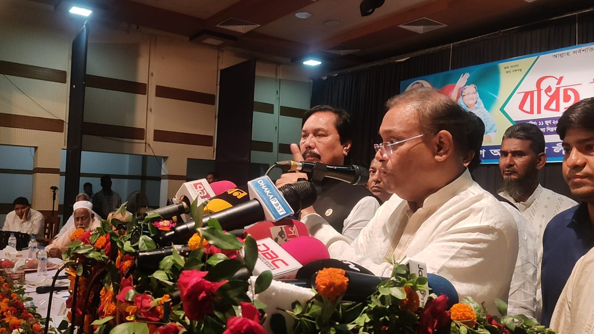 ড. হাছান মাহমুদ বলেন, উত্তর বঙ্গের কোনো কোনো জায়গায় জামায়াতে ইসলামের কিছু কিছু ছোট ছোট ঘাটি আছে। কোনো কোনো জায়গায় বিএনপিও ঘাপটি মেরে বসে আছে। মির্জা ফখরুল সাহেবের বাড়িও তো এখানে উত্তরবঙ্গের ঠাকুরগাঁওয়ে। বেশি দুর তো না এখান থেকে। মির্জা ফখরুল ইসলাম আলমগীর সাহেব আপনাদের উত্তরবঙ্গেরই মানুষ। সুতরাং তিনি যেভাবে আজকে আস্ফালন করছে। যে ভাষায় কথা বলছে, এটি আবার অগ্নি সন্ত্রাসের বার্তা তার মুখ থেকে আমরা দেখতে পাচ্ছি। নৈরাজ্য সৃষ্টি করার অপচেষ্টার আভাস তিনি দিচ্ছেন। তাদেরকে সেই সুযোগ দেওয়া হবে না, দিতে আমরা পারি না।