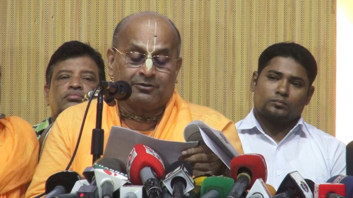 সংবাদ সম্মেলনে লিখিত বক্তব্য পড়ে শোনান ইসকন বাংলাদেশের সাধারণ সম্পাদক চারু চন্দ্র দাস ব্রহ্মচারী। এ সময় পুন্ডরীক ধামের অধ্যক্ষ চিন্ময় কৃঞ্চ দাশ ব্রাহ্মচারীসহ সনাতন ধর্মের বিভিন্ন সংগঠনের নেতারা উপস্থিত ছিলেন।