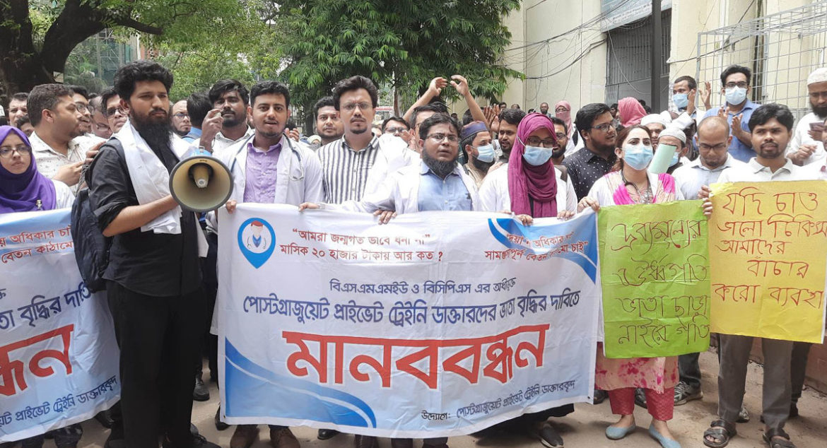 বিষয়টি নিশ্চিত করেপোস্ট গ্র্যাজুয়েট প্রাইভেট ট্রেইনি ডক্টরস অ্যাসোসিয়েশনের সভাপতি ডা. জাবির হোসেন জানান, ‘দ্রব্যমূল্যের ঊর্ধ্বগতির এই বাজারে ২০ হাজার টাকায় একজন চিকিৎসকের চলা খুবই কষ্টকর। তাই আমরা বাধ্য হয়েই কর্মবিরতিতে যাচ্ছি।‘