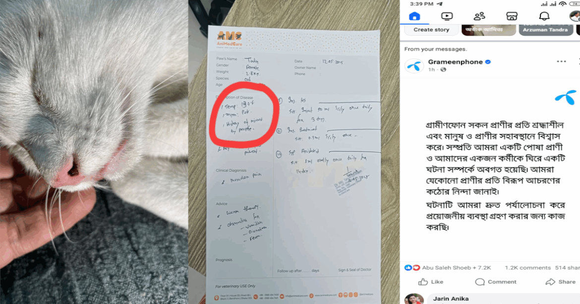 এ নিয়ে ফেসবুকে কিছু ভিডিও ও ছবি শেয়ার করেন বিড়ালের মালিক ইলমা। সঙ্গে পুরো ঘটনা তুলে ধরেন, যা ফেসবুকে ভাইরাল হয়ে পড়ে। এরপর থেকে নেটিজেনরা গ্রামীণফোনকে বিষয়টি নিয়ে পদক্ষেপ নেওয়ার দাবি জানিয়ে আসছিলেন।