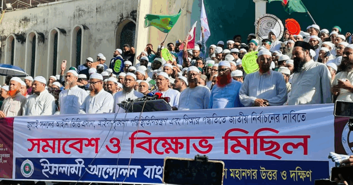 মঙ্গলবার (১৯ আগস্ট) বিকাল ৩টায় বায়তুল মোকাররমে অনুষ্ঠিত ‘জুলাই সনদের আইনি ভিত্তি প্রদান, আইনশৃঙ্খলা পরিস্থিতি নিয়ন্ত্রণ এবং পিআর পদ্ধতিতে জাতীয় নির্বাচনের দাবিতে’ আয়োজিত সমাবেশে তিনি এসব কথা বলেন।