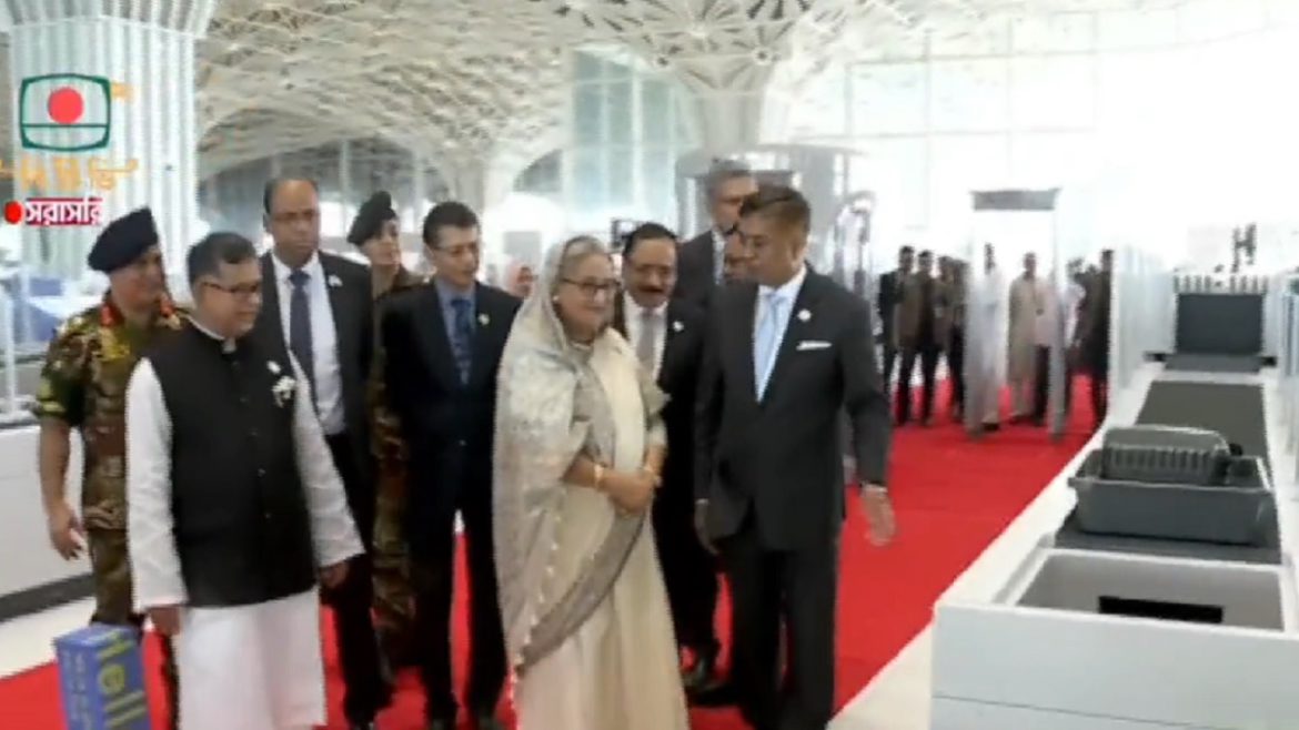 ঢাকার হযরত শাহজালাল আন্তর্জাতিক বিমানবন্দরের তৃতীয় টার্মিনালের একাংশ উদ্বোধন করতে অনুষ্ঠানস্থলে যোগ দিয়েছেন প্রধানমন্ত্রী শেখ হাসিনা। শনিবার (৭ অক্টোবর) সকাল ১০টা ১০ মিনিটের দিকে নতুন টার্মিনালে প্রবেশ করেন তিনি।