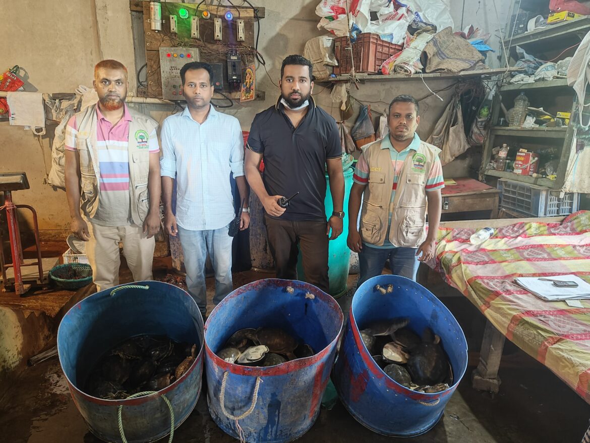 অভিযানে নেতৃত্ব দেন বন্যপ্রাণী পরিদর্শক অসীম মল্লিক ও আব্দুল্লাহ আস সাদিক। তারা জানান, অভিযানের সময় ২৫টি কড়ি কাইট্যা, ৪২টি সুন্ধি কাছিম এবং ৬টি হলুদ কাইট্যা—এই তিন প্রজাতির মোট ৭৩টি কচ্ছপ উদ্ধার করা হয়। উদ্ধারকৃত কচ্ছপগুলোর সম্মিলিত ওজন প্রায় ৮০ কেজি।