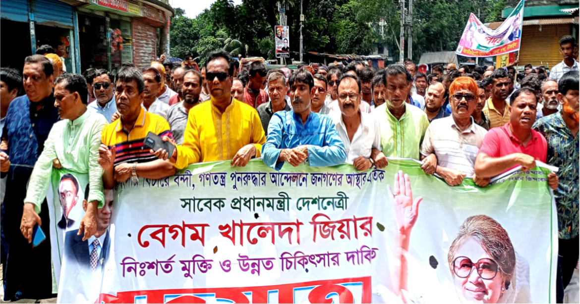 হাসপাতালে চিকিৎসাধীন দলের চেয়ারপার্সন বেগম খালেদা জিয়ার মুক্তি ও উন্নত চিকিৎসার দাবিতে কেন্দ্রিয় কর্মসূচীর অংশ হিসেবে টাঙ্গাইলে পদযাত্রা করেছে বিএনপি।
