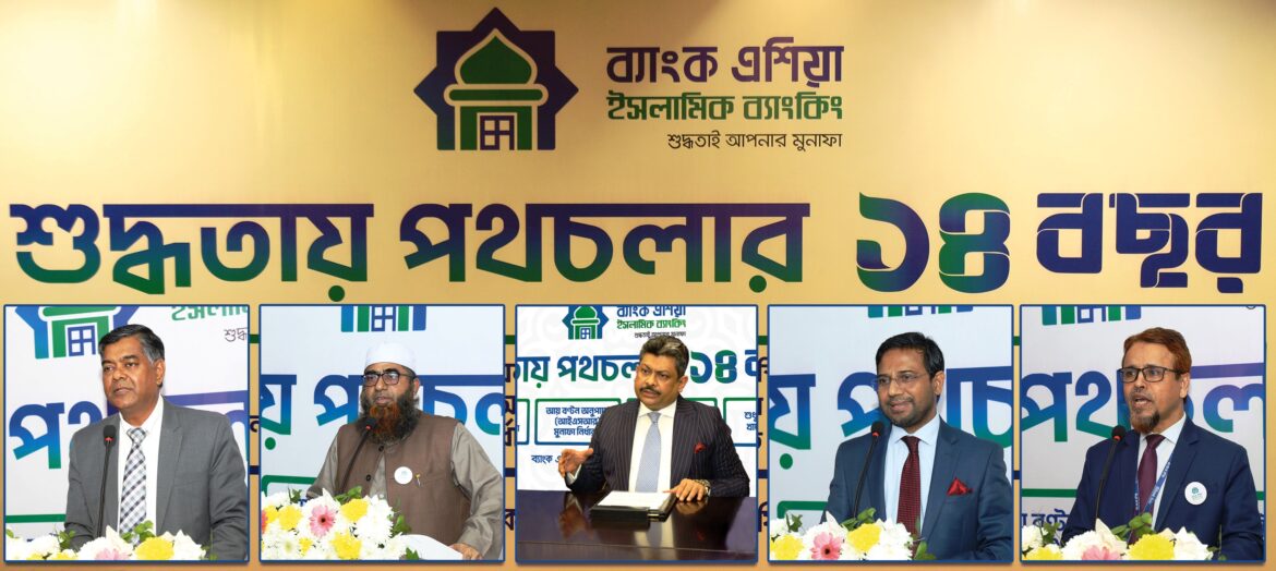 ব্যাংক এশিয়া ইসলামিক ব্যাংকিং সেবার ১৪ তম প্রতিষ্ঠাবার্ষিকী উপলক্ষে ২৬ ডিসেম্বর ২০২২ তারিখে ব্যাংকের পল্টনস্থ কর্পোরেট অফিসে এক আলোচনা সভা ও দোয়া মাহফিলের আয়োজন করা হয়।