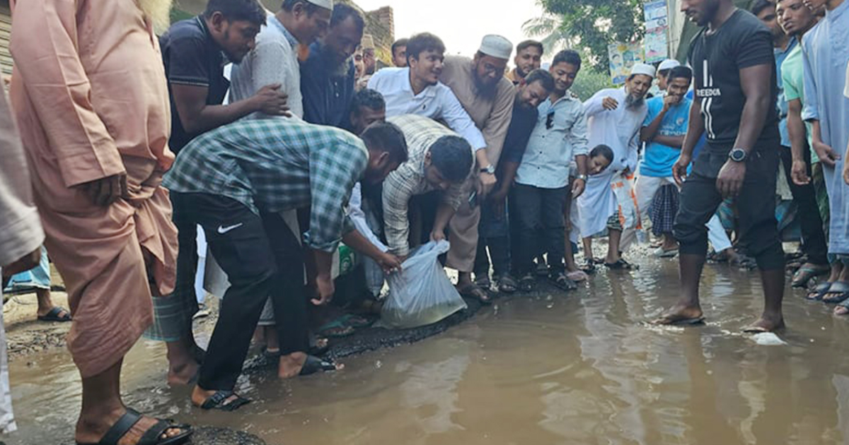 সড়কের গর্তে জমে থাকা পানিতে মাছের পোনা অবমুক্ত করে প্রতিবাদ জানিয়েছেন জাতীয় নাগরিক পার্টি (এনসিপি) দক্ষিণাঞ্চল মুখ্য সংগঠক হাসনাত আবদুল্লাহ।
