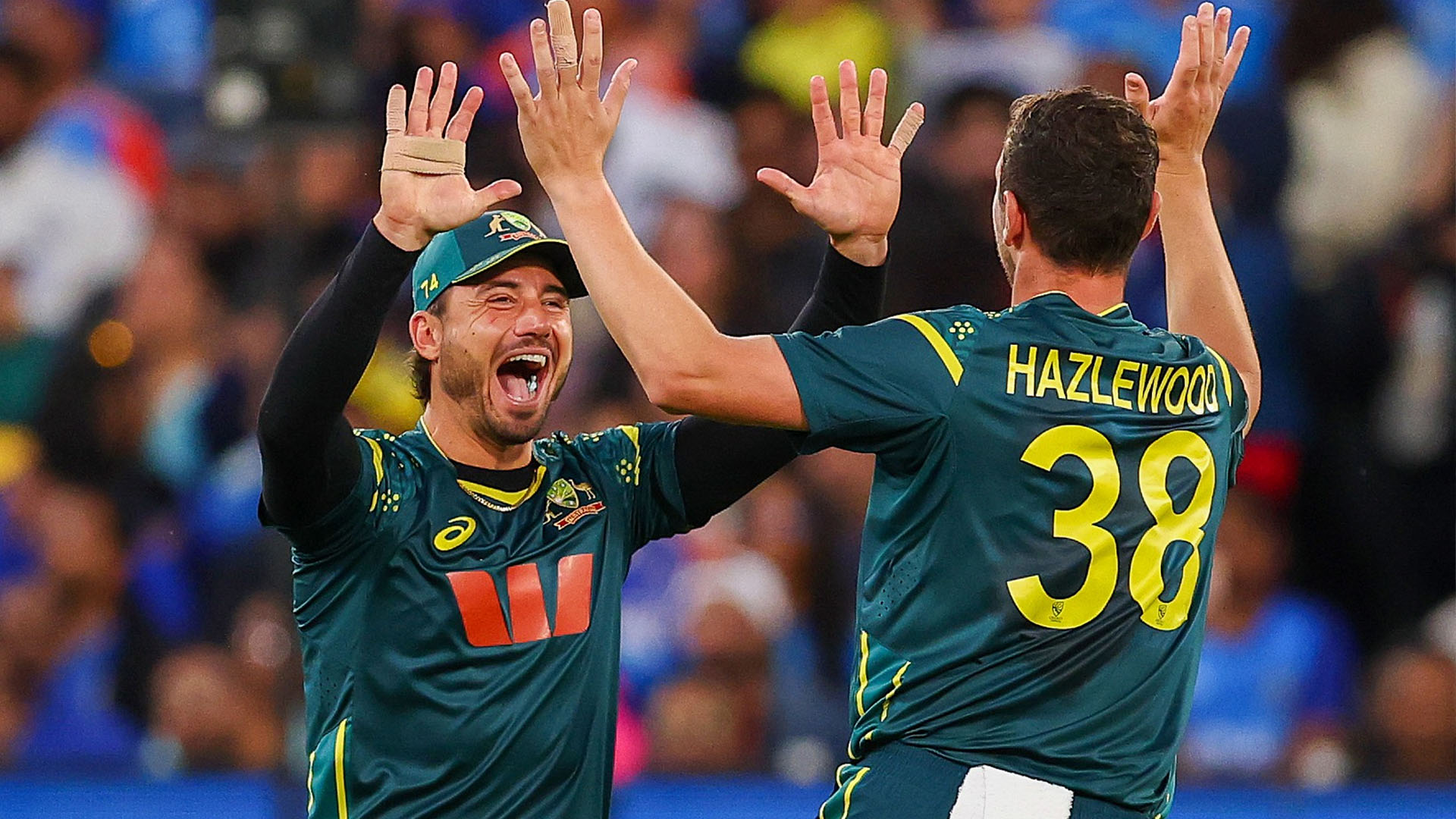 এদিকে সহজ লক্ষ্য তাড়া করতে নেমে ভারতীয় বোলারদের তুলোধুনো করে ১৯ বলে অর্ধশতক রানের জুটি গড়েন দুই অজি ওপেনার মিচেল মার্শ ও ট্রাভিস হেড। হেড ফেরেন ২৮ রানে। ২৬ বলে ৪৬ রানের ঝড়ো ইনিংস খেলেন মিশেল মার্শ। এরপর দ্রুত চার উইকেট পড়লেও কোনো অঘটন ঘটেনি। ১৩ ওভার দুই বলে ছয় উইকেট হারিয়ে জয় তুলে নেয় অজিরা।