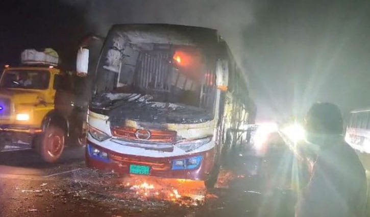 মধ্যরাতে ঢাকা-টাঙ্গাইল মহাসড়কে বাসে আগুন