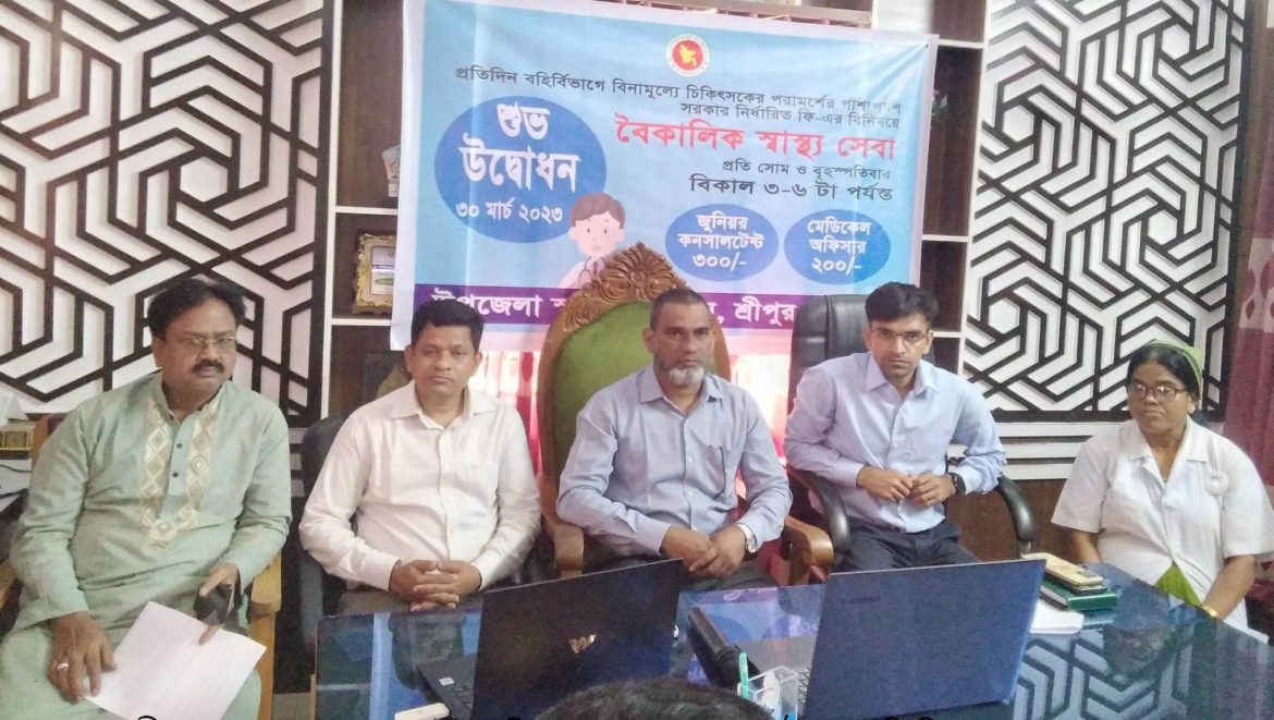 প্রধান অতিথি ডা. শহীদুল্লাহ্ দেওয়ান জানান, বৈকালিক স্বাস্থ্য সেবায় সেবাদানকারী চিকিৎসকগণ সরকার নির্ধারিত ফি গ্রহণ করবেন। শ্রীপুর উপজেলা স্বাস্থ্য কমপ্লেক্সে খুব সংক্ষিপ্ত সময়ের মধ্যে সব বিষয়ের বিশেষজ্ঞ কনসালটেন্টের শূন্যপদ পূরণ করা হবে।