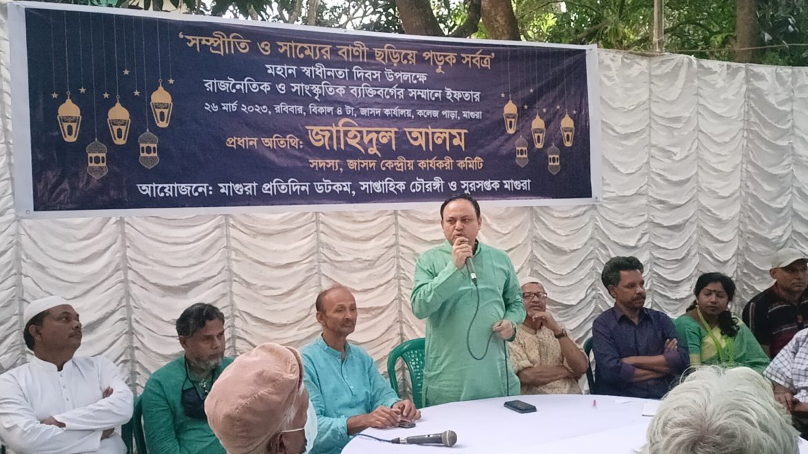 রবিবার (২৬ মার্চ ) বিকাল চারটায় মাগুরা কলেজ পড়া জেলা জাসদ কার্যালয়ে এই ইফতার মাহফিলে প্রধান অতিথি হিসেবে উপস্থিত ছিলেন জাসদ কেন্দ্রীয় কমিটির সদস্য জাহিদুল আলম। অনুষ্ঠানে জেলার রাজনৈতিক, সাংস্কৃতিক ও জেলায় কর্মরত সাংবাদিকবৃন্দ উপস্থিত ছিলেন।
