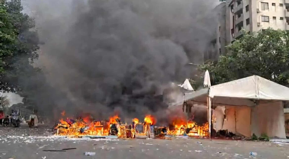 সংসদ ভবনের প্রাঙ্গণে প্রবেশের চেষ্টা করা জুলাই যোদ্ধাদের পুলিশ ধাওয়া দিয়ে সংসদ এলাকা থেকে বের করে দেন। তবে কিছু বিক্ষিপ্ত আন্দোলনকারী সংসদ ভবনের ১২ নম্বর গেট ভেঙে বাইরে বের হয়ে যান। তারা সেই সময় কয়েকটি ট্রাক ও বাস ভাঙচুর করে, যার মধ্যে দুইটি পুলিশের গাড়িও ছিল। পুলিশের ধাওয়া ও লাঠিচার্জের মুখে আন্দোলনকারীরা পুলিশকে লক্ষ্য করে ইট–পাটকেল নিক্ষেপ করে।
