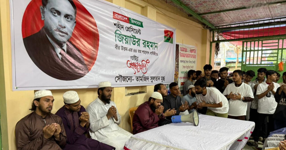 দলের প্রতিষ্ঠাতা সাবেক প্রেসিডেন্ট জিয়াউর রহমানের রুহের মাগফেরাত কামনা, বিএনপির চেয়ারপার্সন, সাবেক প্রধানমন্ত্রী বেগম খালেদা জিয়ার সুস্থতা, দীর্ঘায়ু এবং বিএনপির ভারপ্রাপ্ত চেয়ারম্যান তারেক রহমানের শারিরীক সুস্থতা ও দীর্ঘায়ু, শহীদ জিয়াউর রহমানের ছোট ছেলে মরহুম আরাফাত রহমান কোকোর রুহের মাগফেরাত কামনাসহ দেশজাতির মঙ্গল কামনা করে বিশেষ মোনাজাত করা হয়। মোনাজাত শেষে প্রায় এক হাজার মানুষের মাঝে খাবার বিতরণ করা হয়।