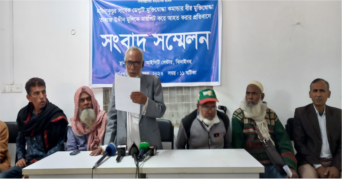 সংবাদ সম্মেলনে মুক্তিযোদ্ধা ইউসুফ আলী, জানে আলম, আব্দুল ওহাব ও হরিনাকুন্ডুর চাঁদপুর ইউনিয়ন আ.লীগের সাধারন সম্পাদক আব্দুর রাজ্জাক লস্করসহ অন্যান্যরা উপস্থিত ছিলেন।