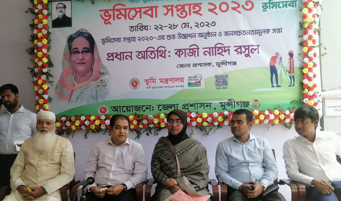 ‘স্মার্ট ভূমি সেবায় ভূমি মন্ত্রণালয়‘ প্রতিপাদ্যকে সামনে রেখে মুন্সীগঞ্জে শুরু হয়েছে ‘ভূমি সেবা সপ্তাহ–২০২৩‘। সোমবার (২২ মে) সকালে জেলা কালেক্টর মাঠে এর উদ্বোধন করেন প্রধান অতিথি মুন্সীগঞ্জের জেলা প্রশাসক কাজী নাহিদ রসূল।