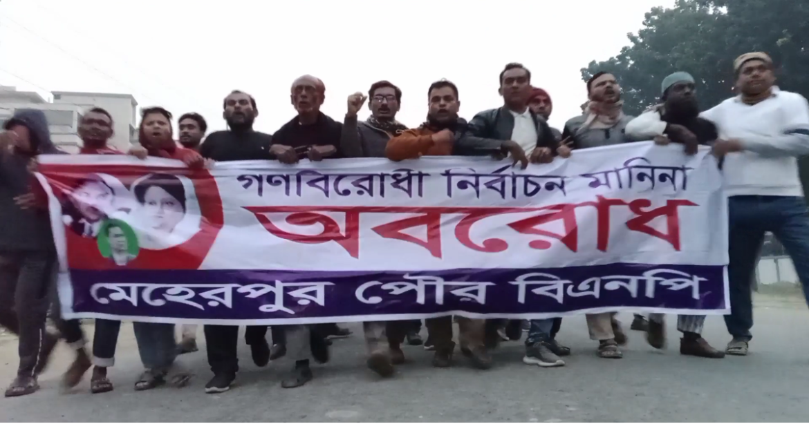 মেহেরপুরে অবরোধের সমর্থনে বিএনপি’র ঝটিকা মিছিল