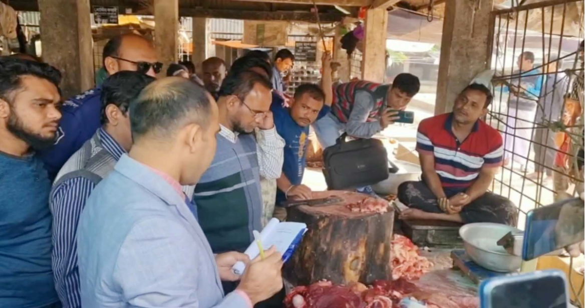 ভ্রাম্যমান আদালত সূত্রে জানা যায়, সরকার নির্ধারিত মূল্যের চেয়ে অধিক মূল্যে মাংস বিক্রি হচ্ছে এমন সংবাদের ভিত্তিতে অভিযান চালিয়ে ২০০৯ সালের ৩৮ ধারায় দুই মাংস ব্যবসায়ীকে জরিমানা করা হয়।