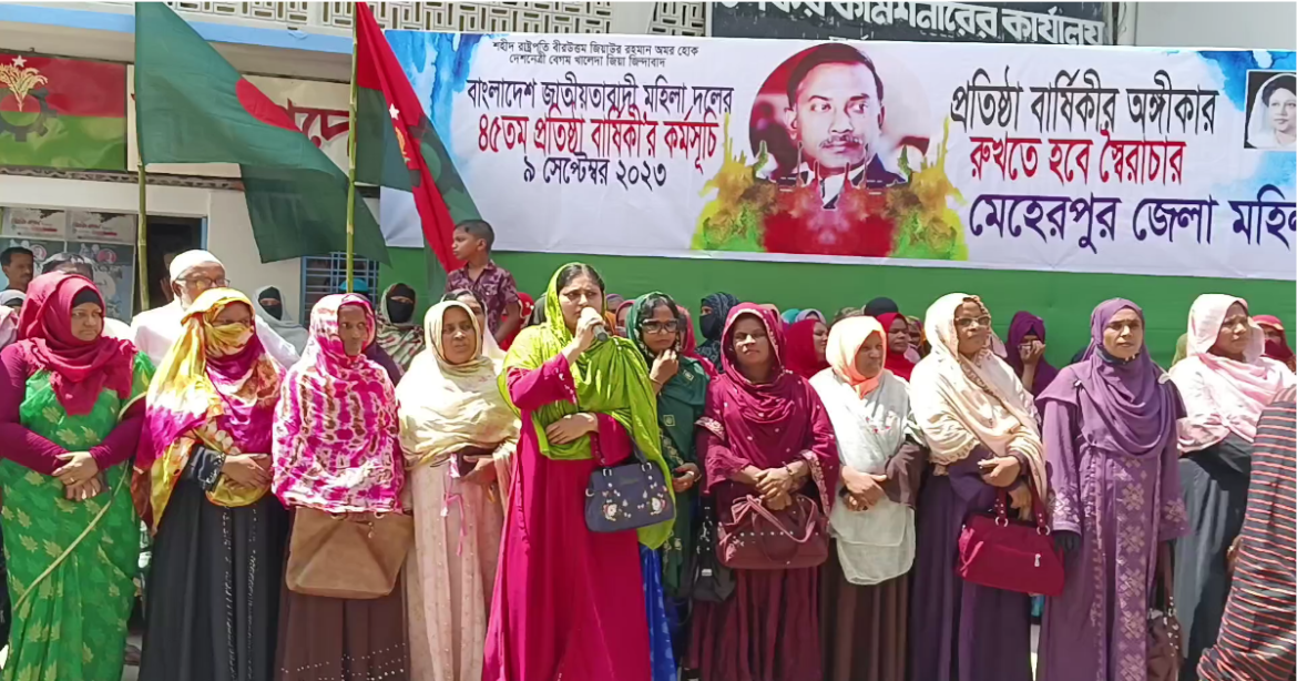 বাংলাদেশ জাতীয়তাবাদী মহিলা দলের ৪৫তম প্রতিষ্ঠাবার্ষিকী উপলক্ষে মেহেরপুর জেলা মহিলা দলের উদ্যোগে আলোচনা সভা অনুষ্ঠিত হয়েছে।
