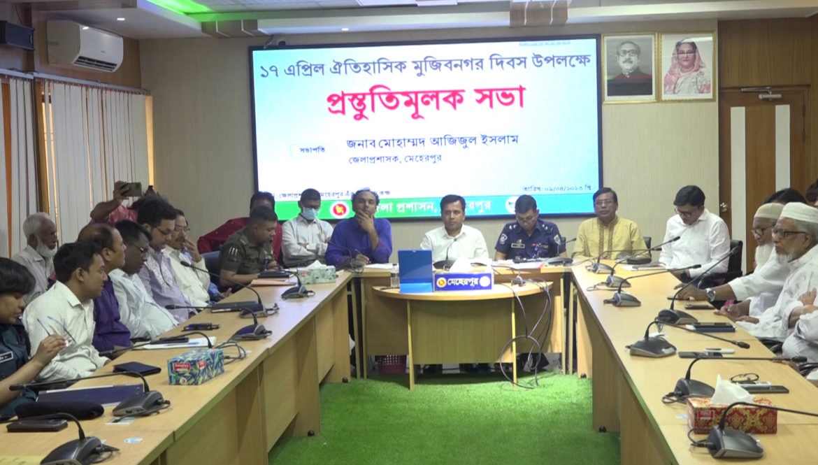 বক্তব্য রাখেন পুলিশ সুপার রাফিউল আলম, জেলা আওয়ামী লীগের সভাপতি এম.এ খালেক। ১৭ এপ্রিল মুজিবনগর দিবস উপলক্ষে নানা কর্মসূচি হাতে নেওয়া হয় সভা থেকে। এদিন সূর্যোদয়ের সাথে সাথে মুজিবনগর স্মৃতিসৌধে জাতীয় পতাকা উত্তোলনের মধ্য দিয়ে দিনের সূচনা করা হবে। পরে শেখ হাসিনা মঞ্চে আলোচনা সভার আয়োজন করা হয়েছে।