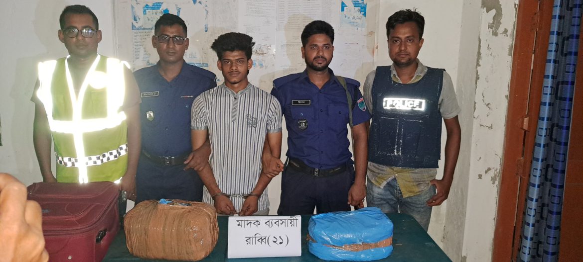 পুলিশ সূত্রে জানা যায়, রাব্বির কাছে থাকা কাপড় বহনের একটি লাগেজের মধ্য থেকে ৬ কেজি গাঁজা উদ্ধার করেছে। উদ্ধারকৃত গাঁজার স্থানীয় বাজার মূল্য প্রায় সাড়ে ৩ লাখ টাকা বলে জানায় পুলিশ।
