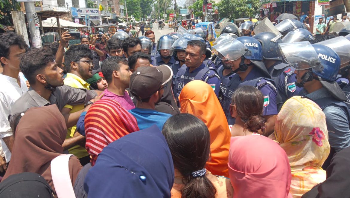 এ সময় মিছিলের চেষ্টা করলে তাদের ছত্রভঙ্গ করে দেয় পুলিশ। এরপর শহরের ঈদগাহ মোড় থেকে শিক্ষার্থীরা বিক্ষোভ মিছিল নিয়ে পুলিশ সুপার কার্যালয়ের দিকে অগ্রসর হয়। পুলিশ বাঁধা দিলে তারা পুলিশের বাঁধা উপেক্ষা করে মিছিল নিয়ে অগ্রসর হতে থাকে।