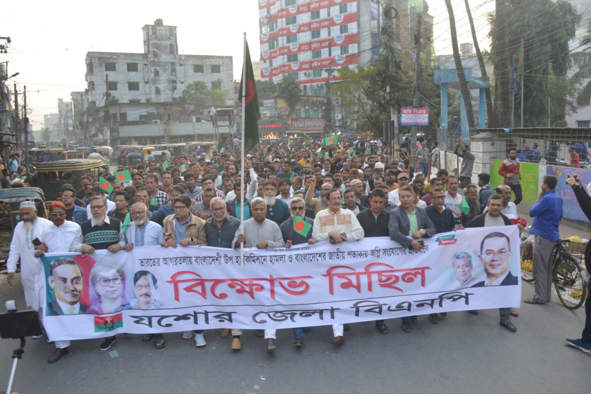 ভারতের আগরতলায় বাংলাদেশি সহকারী হাইকমিশনে হামলা ও বাংলাদেশের জাতীয় পতাকায় অগ্নিসংযোগের প্রতিবাদে যশোরে বিক্ষোভ মিছিল ও সমাবেশ করেছে জেলা বিএনপি।