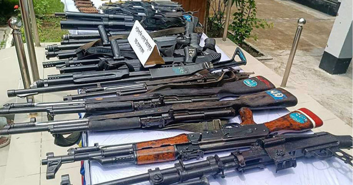 বিজ্ঞপ্তিতে বলা হয়, উদ্ধার হওয়া অস্ত্রের মধ্যে রয়েছে— রিভলভার আটটি, পিস্তল ৪১টি, রাইফেল ১১টি, শটগান ১৭টি, পাইপগান পাঁচটি, শুটারগান ১৯টি, এলজি ১০টি, বন্দুক ২২টি, একে৪৭ একটি, গ্যাসগান একটি, চাইনিজ রাইফেল একটি, এয়ারগান একটি, টিয়ার গ্যাস লঞ্চার একটি, এসএমজি তিনটি এবং এসবিবিএল তিনটি।