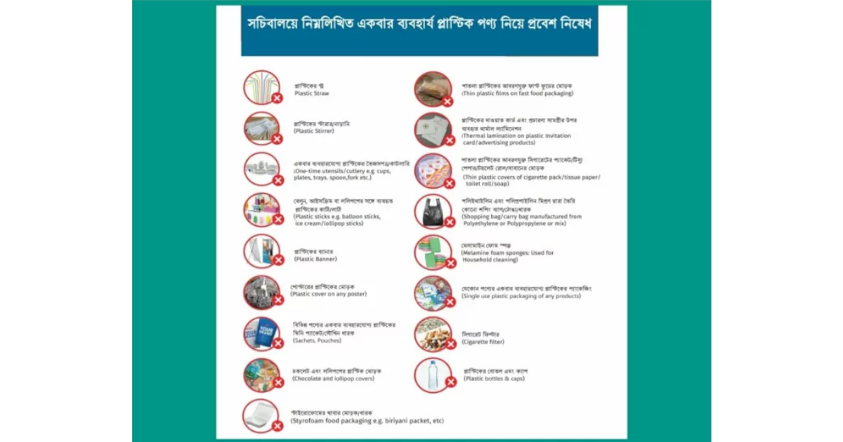 রবিবার থেকে সচিবালয়ে নিষিদ্ধ সিঙ্গেল ইউজ প্লাস্টিক