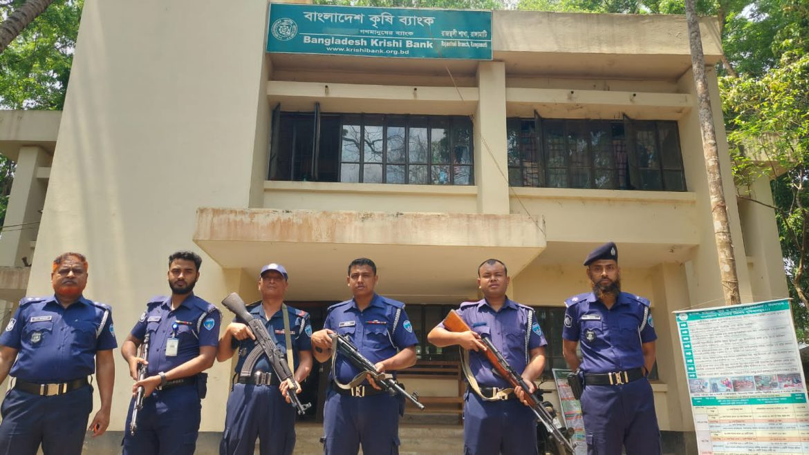 রাঙামাটির বান্দরবানের সাথে লাগুয়া উপজেলাগুলোতে বিশেষ করে বাড়তি নিরাপত্তা ব্যবস্থা যোদ্ধার করেছে পুলিশ। রাঙামাটির জুরাছড়ি, রাজস্থলী, বিলাইছড়ি, বরকল, বাঘাইছড়ি উপজেলাগুলোর ব্যাংকে বিশেষ নিরাপত্তা ব্যবস্থা নেয়ার কথা জানিয়েছেন সংশ্লিষ্ট থানা কর্মকর্তারা। এইসকল উপজেলাগুলোতে প্রধানত সোনালী, কৃষি ও পল্লীসঞ্চয় ব্যাংক রয়েছে। এছাড়াও জেলার অন্যান্য উপজেলার ব্যাংকগুলোতেও নিরাপত্তা নিশ্চিতের কথা জানিয়েছেন আইনশৃঙ্খলা রক্ষাকারীবাহিনীর সংশ্লিষ্টরা।