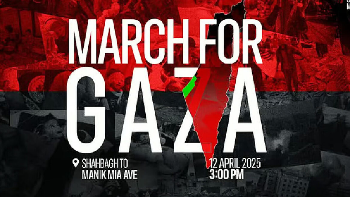 ইসরায়েলি আগ্রাসনের প্রতিবাদে ফিলিস্তিনিদের সঙ্গে সংহতি প্রকাশ করে রাজধানীতে হতে যাচ্ছে ‘মার্চ ফর গাজা’ কর্মসূচি।