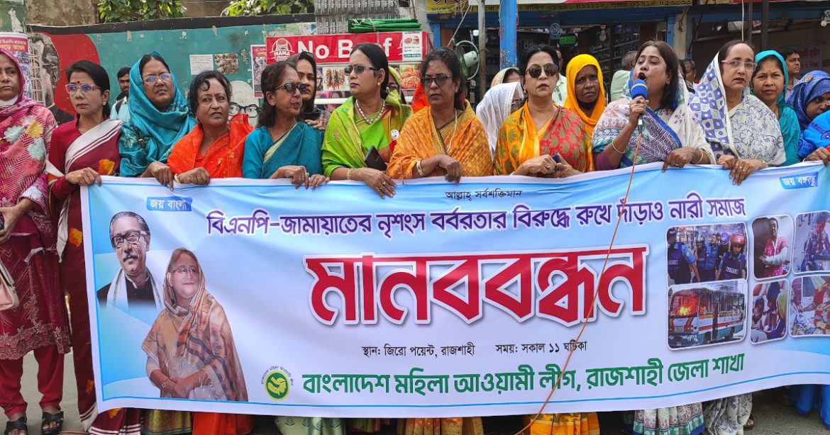 রাজশাহীতে মহিলা আ.লীগের মানববন্ধন