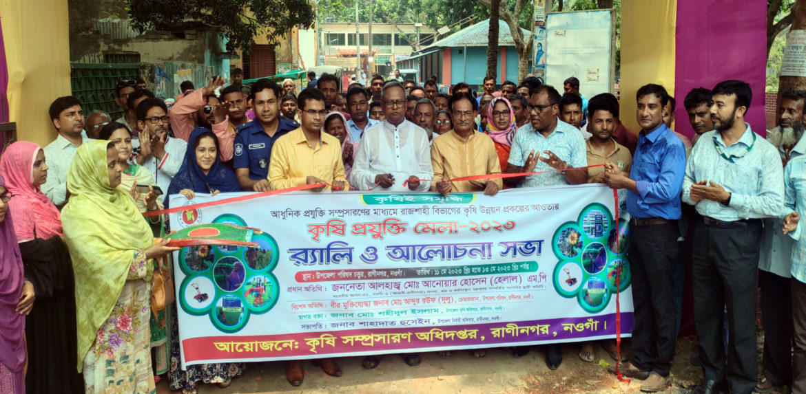 নওগাঁর রাণীনগরে আধুনিক প্রযুক্তি সম্প্রসারণের মাধ্যমে রাজশাহী বিভাগের কৃষি উন্নয়ন প্রকল্প ও কন্দাল ফসল উন্নয়ন প্রকল্পের আওতায় তিনদিন ব্যাপী কৃষি মেলার উদ্বোধন করা হয়েছে। বৃহস্পতিবার ( ১১ মে ) উপজেলা পরিষদ চত্বরে উপজেলা কৃষি সম্প্রসারণ অধিদপ্তরের আয়োজনে প্রধান অতিথি হিসেবে র্যালী শেষে মেলার উদ্বোধন করেন নওগাঁ–৬ (আত্রাই–রাণীনগর) আসনের সংসদ সদস্য আলহাজ্ব মো. আনোয়ার হোসেন হেলাল।