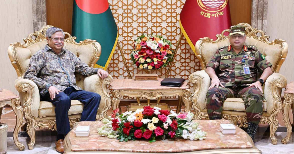 রাষ্ট্রপতি ও সশস্ত্র বাহিনীর সর্বাধিনায়ক মো. সাহাবুদ্দিনের সাথে সাক্ষাৎ করেছেন সেনাবাহিনী প্রধান জেনারেল ওয়াকার–উজ–জামান।