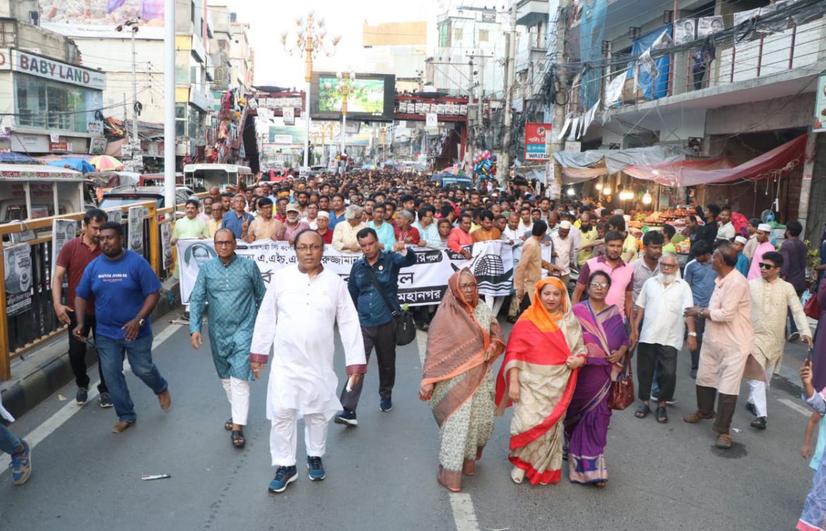মিছিলটি সাহেব বাজার জিরোপয়েন্ট হয়ে কুমাড়পাড়া দলীয় কার্যালয় ঘুরে আরডিএ মার্কেটের সামনে দিয়ে মনিচত্বর হয়ে সোনাদিঘি মোড় হয়ে পুনরায় জয় বাংলা চত্বরে গিয়ে শেষ হয়।
