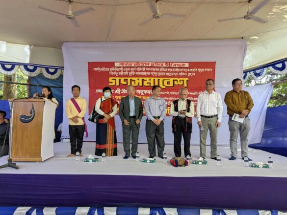 সমাবেশের পূর্বে শহরের বিভিন্ন স্থান থেকে মিছিল সহকারে পাহাড়ি অধিবাসীরা সমাবেশে যোগ দেই।