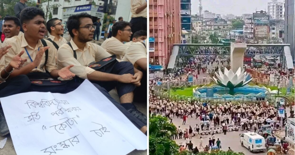 মঙ্গলবার (১৬ জুলাই) দুপুর সাড়ে ১২টার পর শিক্ষার্থীরা সেখানে অবস্থান নেয়। এ সময় “আমার ভাইয়ের রক্ত, বৃথা যেতে দেব না” সহ কোটা সংস্কারের দাবিতে অন্যান্য স্লোগান দিতে থাকেন।