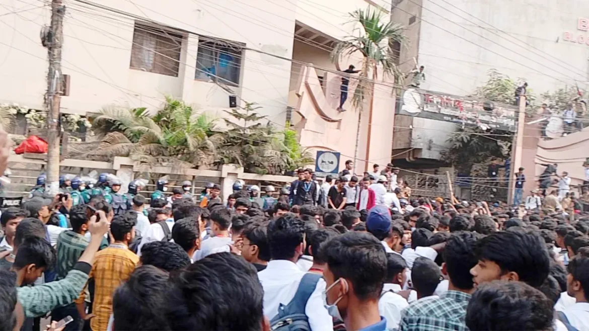 রবিবার (২৪ নভেম্বর) দুপুর ১ টার সময় শিক্ষার্থীরা কলেজের মেইন গেট ভেঙে ভেতরে ঢুকে ভাংচুর চালায়। এর আগে মুরগীটোলা মোড় ও রায়সাহেব বাজারের পুলিশের ব্যারিকেড ভেঙে ফেলেন শিক্ষার্থীরা।