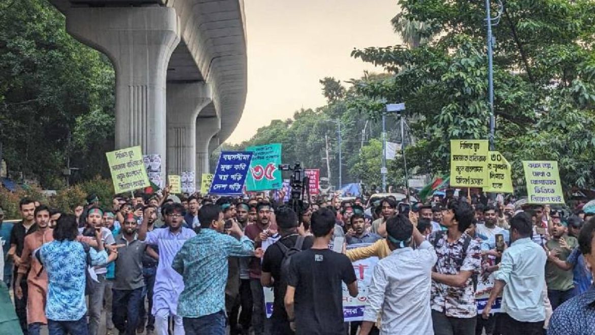 বয়স না মেধা–মেধা মেধা, আর নয় কালক্ষেপণ–এবার দাও প্রজ্ঞাপন, ৩০ এর শৃঙ্খল–ভেঙে দাও গুঁড়িয়ে দাও, পদ্মা–মেঘনা–যমুনা, ৩৫ আমার ঠিকানা, বৈষম্যবিরোধী বাংলাদেশে বৈষম্যের ঠাঁই নেই, সাড়া বাংলায় খবর দে, ৩০ এর কবর দে– এমন বিভিন্ন স্লোগান দিতে থাকেন বিক্ষোভকারীরা।