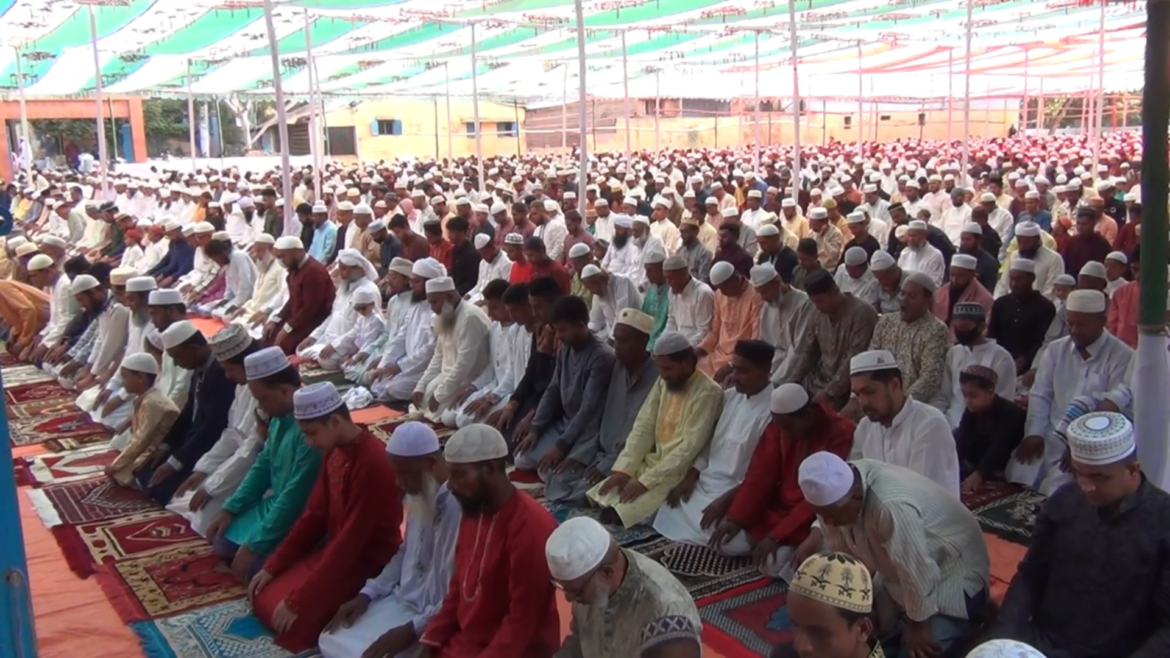 নামাজ শেষে একে অপরকে কোলাকুলির মাধ্যমে একতা, শান্তি, সম্প্রীতি ও সৌহার্দ্য প্রকাশ করেন উপস্থিত মুসল্লিরা।