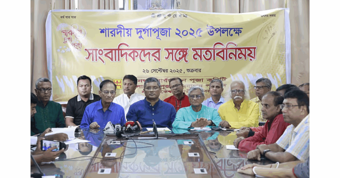 শুক্রবার (২৬ সেপ্টেম্বর) দুপুরে রাজধানী ঢাকেশ্বরী জাতীয় মন্দিরে বাংলাদেশ পূজা উদ্যাপন পরিষদ ও মহানগর সার্বজনীন পূজা কমিটি এক মতবিনিময়ে এসব তথ্য জানান। এতে মহানগর সার্বজনীন পূজা কমিটি সভাপতি জয়ন্ত কুমার দেব লিখিত বক্তব্য পাঠ করেন।