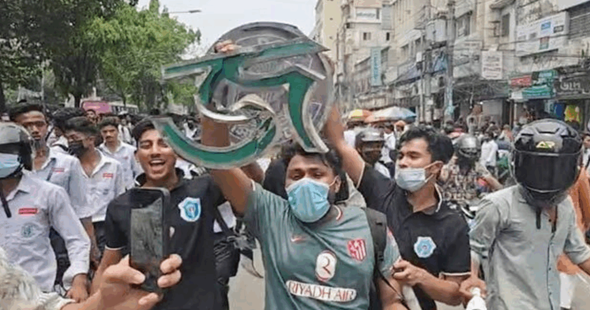 সিটি কলেজের ‘নামফলক’ খুলে নিল ঢাকা কলেজ শিক্ষার্থীরা