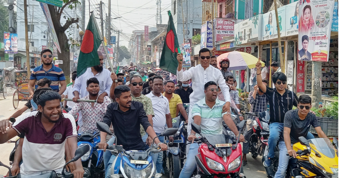 শোডাউনে তারা ‘জয় বাংলা, জয় বঙ্গবন্ধু’, শেখ হাসিনার সরকার,বারবার দরকার’, ‘জামায়াত–শিবির–রাজাকার এই মুহূর্তে বাংলা ছাড়’ স্লোগান দিতে থাকে।